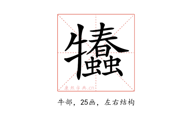 〔𤜗〕字拼音是(chǔn),部首是牛部,总笔画是25画。
