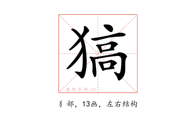 〔𤠖〕字是左右结构,可拆字为“犭、高”。