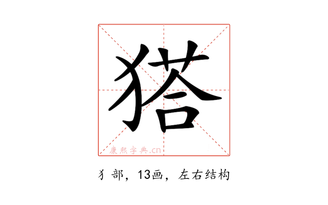 〔𤠟〕字拼音是(tà),部首是犭部,总笔画是13画。
