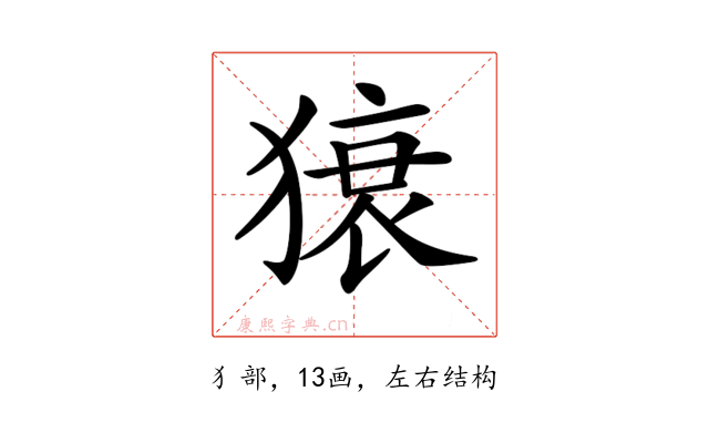 〔𤠠〕字是左右结构,可拆字为“犭、衰”。