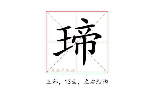 〔𤧛〕字是左右结构,可拆字为“王、帝”或“⺩、帝”。