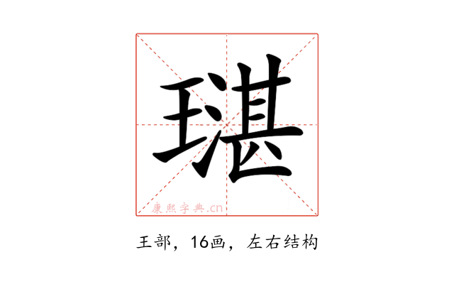 〔𤩌〕字是左右结构,可拆字为“王、湛”或“⺩、湛”。