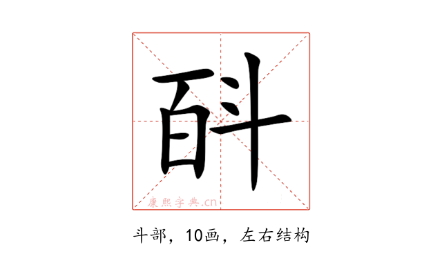 〔㪶〕字是左右结构,可拆字为“百、斗”。