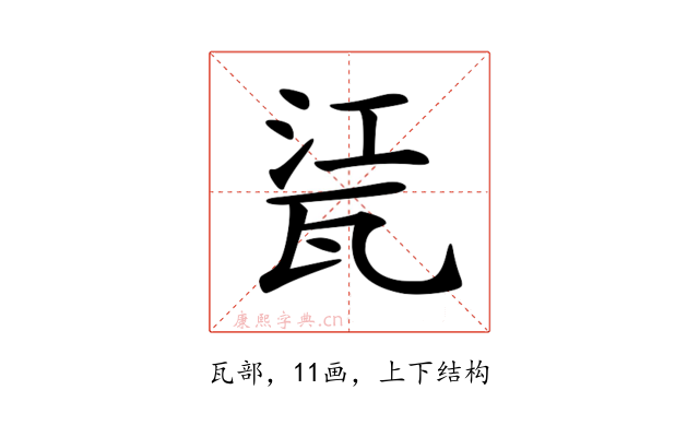 〔𤭊〕字部首是瓦部,总笔画是11画。