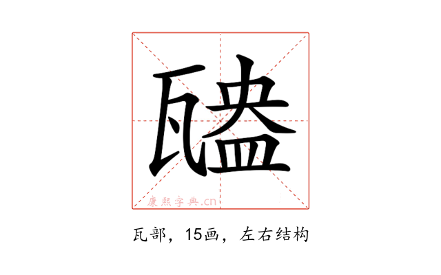 〔𤮃〕字是左右结构,可拆字为“瓦、盎”。