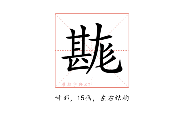 〔𤯉〕字部首是甘部,总笔画是15画。