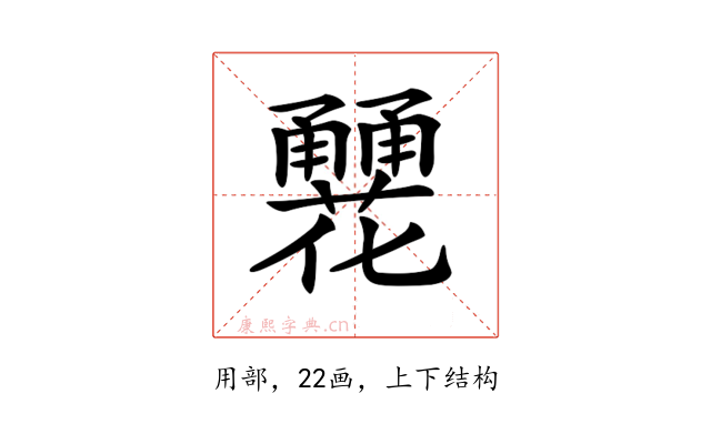 〔𤰏〕字是上下结构,可拆字为“甬、甬、花”。