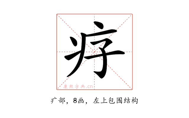 〔𤴳〕字部首是疒部,总笔画是8画。