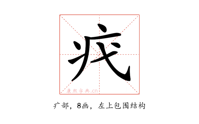 〔𤴵〕字部首是疒部,总笔画是8画。