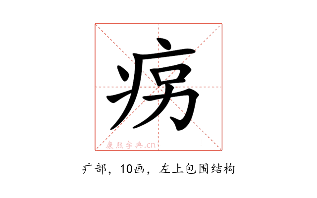 〔𤵱〕字部首是疒部,总笔画是10画。