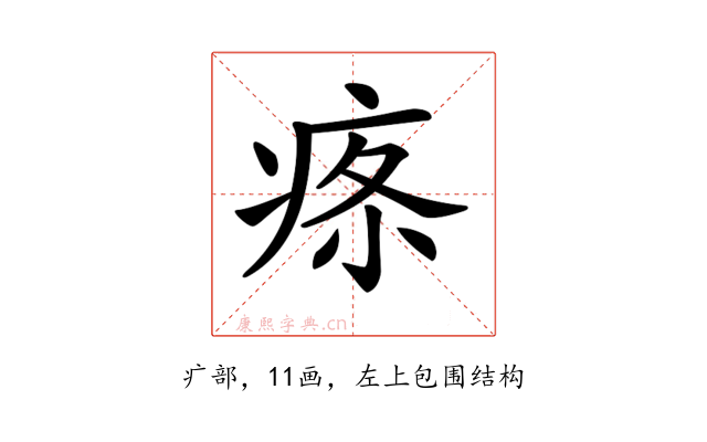 〔𤶔〕字部首是疒部,总笔画是11画。