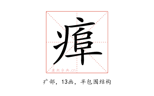 〔𤷎〕字拼音是(duī),部首是疒部,总笔画是13画。