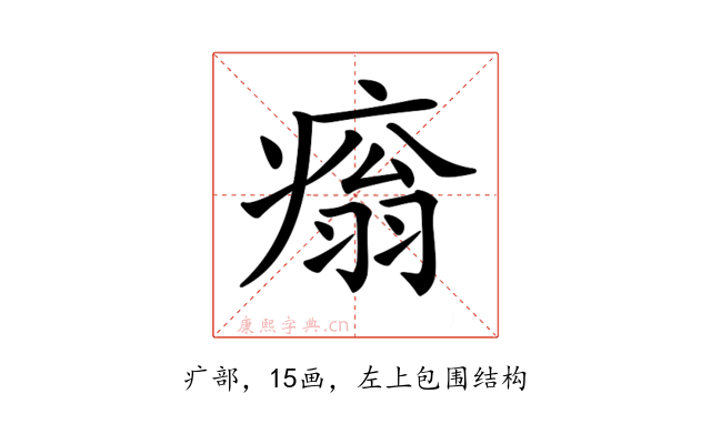 〔𤹗〕字是左上包围结构,可拆字为“疒、翁”。