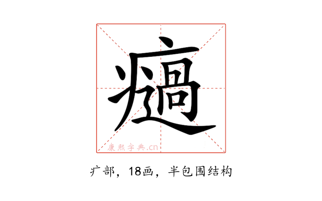 〔𤻌〕字拼音是(wò),部首是疒部,总笔画是18画。