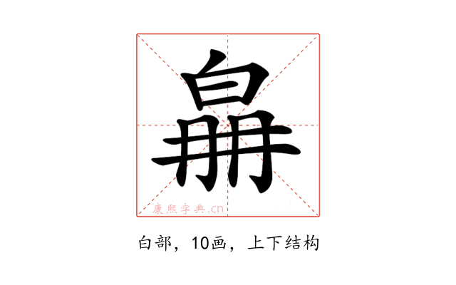 〔𤽛〕字是上下结构,可拆字为“白、𠕋”或“白、𠕋”。