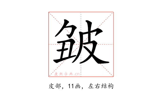 〔𤿥〕字部首是皮部,总笔画是11画。