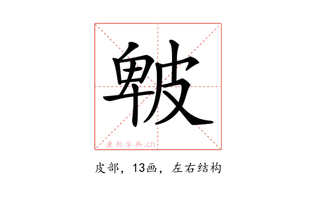 〔𤿾〕字拼音是(bēi),部首是皮部,总笔画是13画。