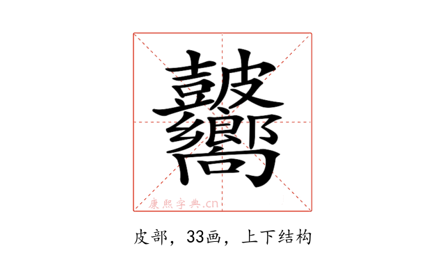 〔𥀾〕字拼音是(xiàng),部首是皮部,总笔画是33画。