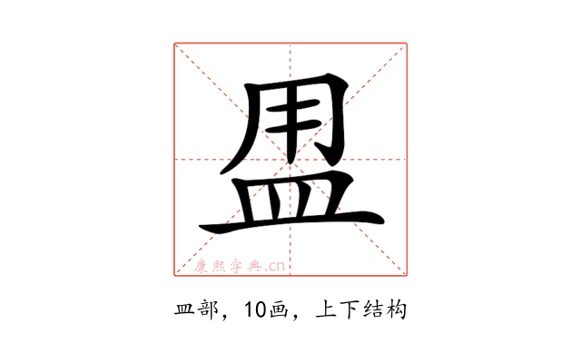〔𥁎〕字拼音是(yòng),部首是皿部,总笔画是10画。
