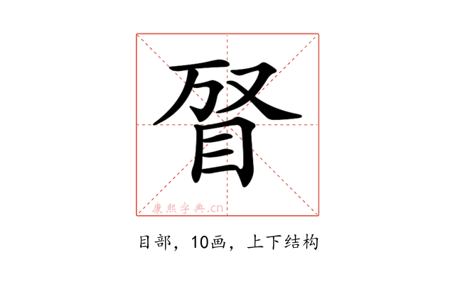 〔𥅐〕字部首是目部,总笔画是10画。