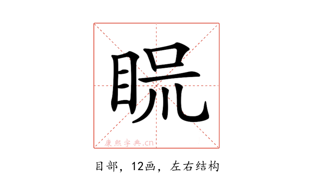 〔𥆰〕字部首是目部,总笔画是12画。