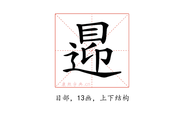 〔𥈁〕字是上下结构,可拆字为“目、迎”。