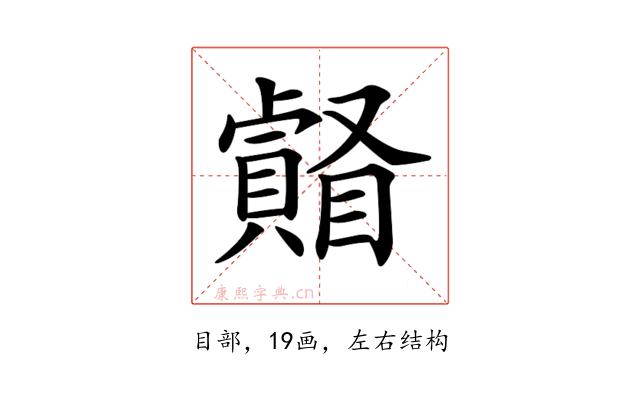 纠错〔𥌄〕字拼音是(kū),部首是目部,总笔画是19画。