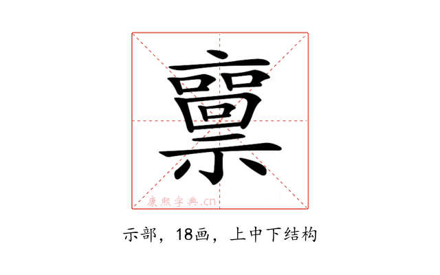 〔𥜘〕字部首是示部,总笔画是18画。