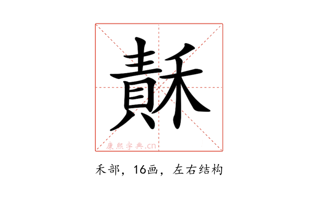 〔𥡯〕字部首是禾部,总笔画是16画。