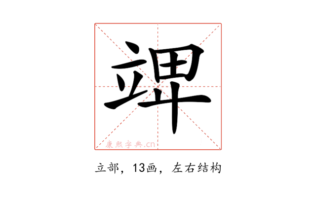 〔𥪎〕字是左右结构,可拆字为“立、卑”或“立、𤰞”。