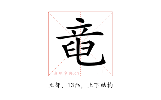 〔𥪖〕字是上下结构,可拆字为“立、电”。