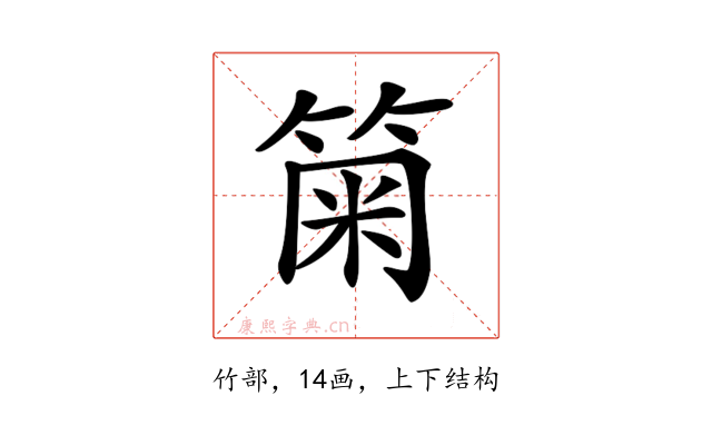 〔𥮫〕字部首是竹部,总笔画是14画。