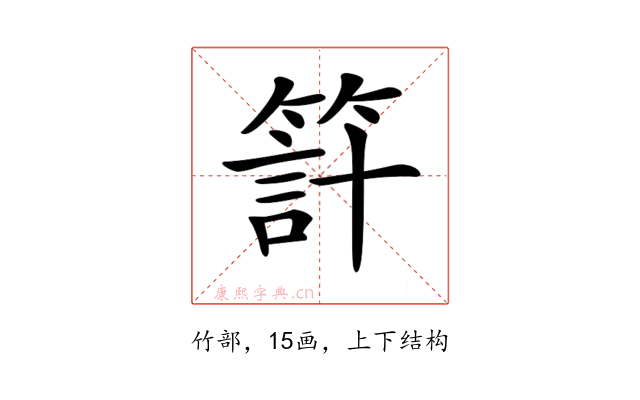 〔𥰇〕字部首是竹部,总笔画是15画。