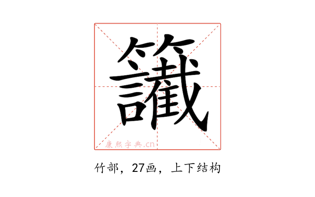 〔𥸔〕字拼音是(chàn),部首是竹部,总笔画是27画。