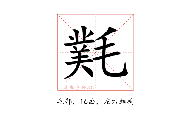 毛部 共16画 左右结构 U+3CAB CJK 扩展A