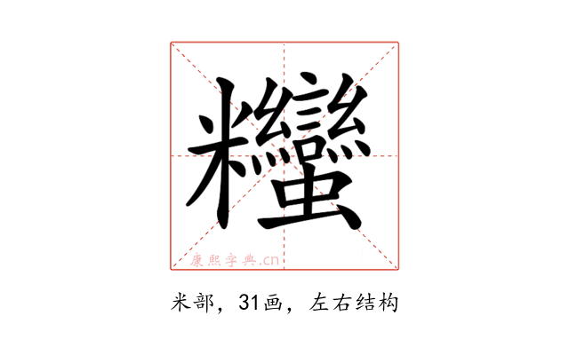 〔𥾃〕字部首是米部,总笔画是31画。