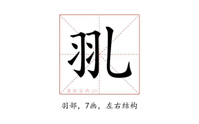 〔𦏳〕字是左右结构,可拆字为“羽、乚”。