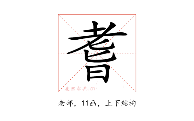 〔𦓀〕字是上下结构,可拆字为“老、旨”。