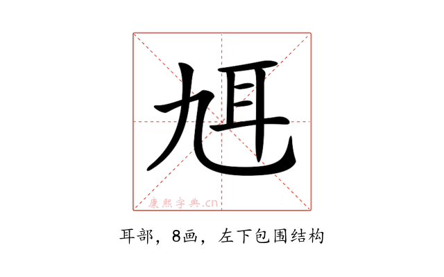 〔𦔱〕字是左下包围结构,可拆字为“九、耳”。