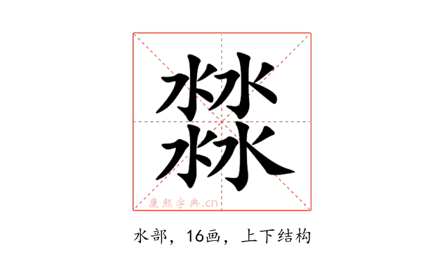 〔㵘〕字是上下结构,四叠字 (田字型四叠字),可拆字为“水、水、水、水”或“沝、沝”。