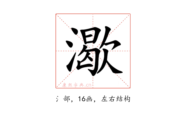 〔㵣〕字是左右结构,可拆字为“氵、歇”。