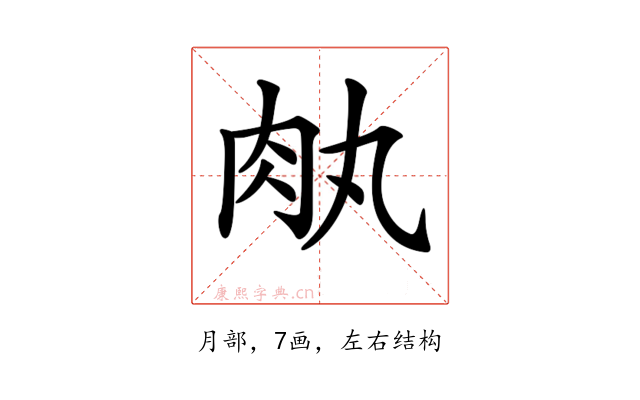 〔𦘾〕字是左右结构,可拆字为“肉、丸”。