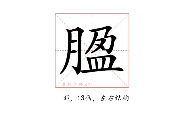 〔𦝚〕字是左右结构,可拆字为“月、盈”或“⺼、盈”。