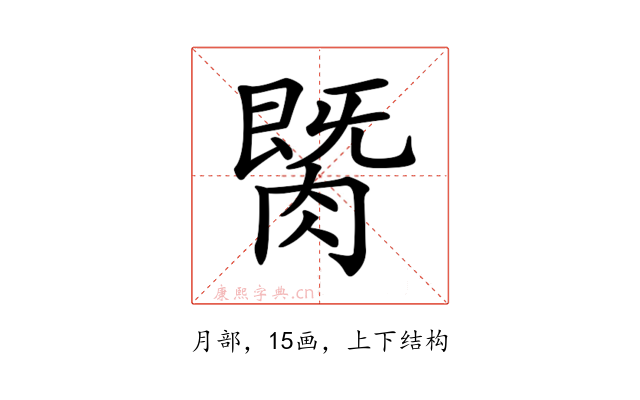 〔𦟡〕字是上下结构,可拆字为“既、肉”或“旣、肉”。