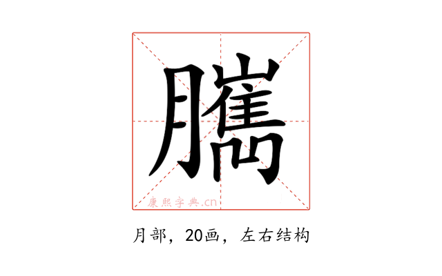 〔𦢥〕字部首是月部,总笔画是20画。
