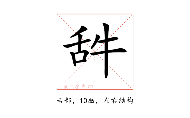 〔𦧋〕字是左右结构,可拆字为“舌、牛”。