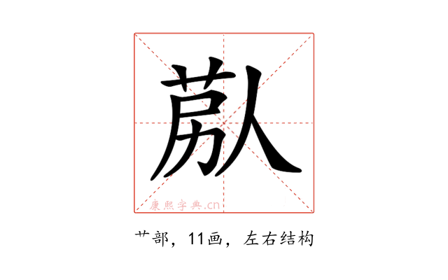 〔𦯴〕字部首是艹部,总笔画是11画。