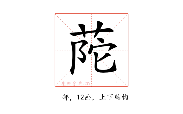 〔𦱆〕字是上下结构,可拆字为“艹、陀”。