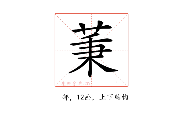 〔𦱮〕字是上下结构,可拆字为“艹、秉”。