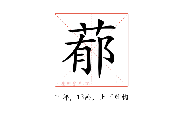 〔𦵁〕字是上下结构,可拆字为“艹、郁”。